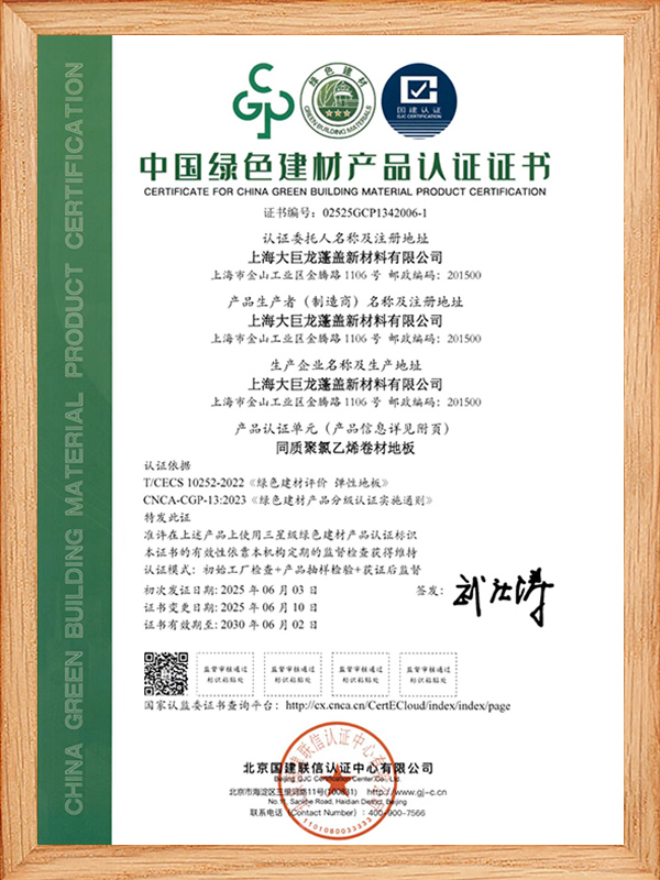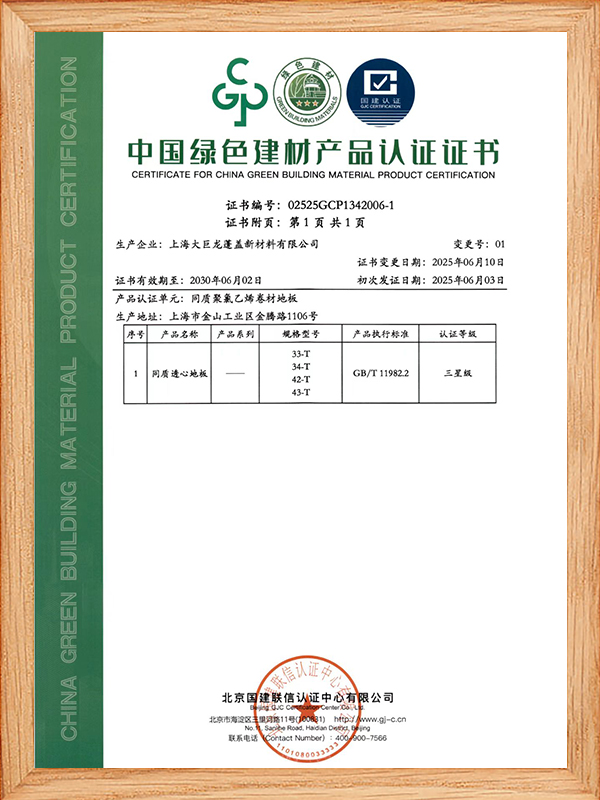 1. Tildelt FloorScore-sertifisering i USA 2. Re-tildelt sertifikatet «Outstanding Blood Donation Collective i Jinshan District, Shanghai» 3. Styrelederen vår hedret som en 'fremragende skikkelse i boliginnrednings- og byggematerialeindustrien for 70-årsjubileet for grunnleggelsen av Folkerepublikken Kina'