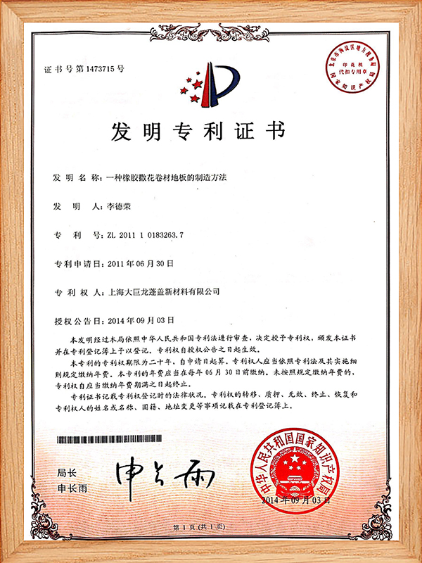 1. Oppnådd 9 oppfinnelsespatentsertifikater 2. Deltok i den offentlige velferdskampanjen «Velferdskultur til hvert hjem», og mottok «Bidragsprisen for utvikling av velferdskultur» fra China Social Welfare Association 3. Styrelederen vår ble hedret som en "fremstående figur" og "fremragende entreprenør" i Kinas spenstige gulvindustri av China Building Decoration Materials Association. Han ble spesielt utnevnt til "ekspertpanelmedlem" i foreningens fagutvalg for elastiske gulv 4. Gjenoppnådde «High-Tech Enterprise»-sertifiseringen 5. Styrelederen vår ble forfremmet til «Roterende president» for China Building Decoration Materials Association. 6. Første deltagelse på DOMOTEX gulvutstilling i Hannover, Tyskland.