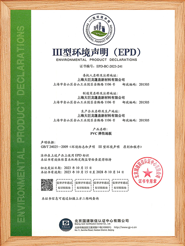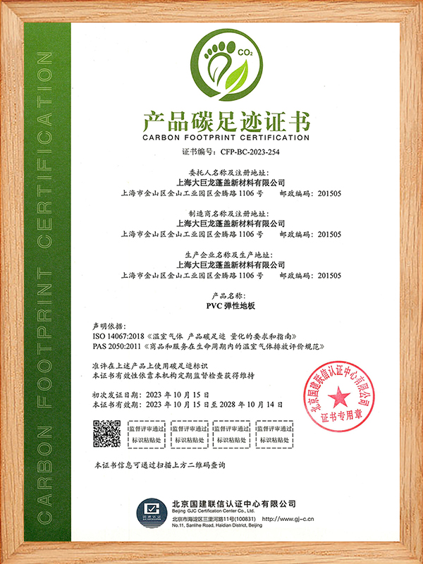 1. Første anerkjennelse som 'China Elastic Flooring Production Base'. 2. Oppnådde ISO9001:2008 og ISO14001:2004 sertifisering. 3. Bidro til å formulere den nasjonale standarden GB/T-11982 for elastiske gulv, og har gitt betydelige bidrag til å fremme utviklingen av PVC-gulv i Kina og globalt. 4. Første deltagelse på SURFACE-gulvutstillingen i Las Vegas, USA.